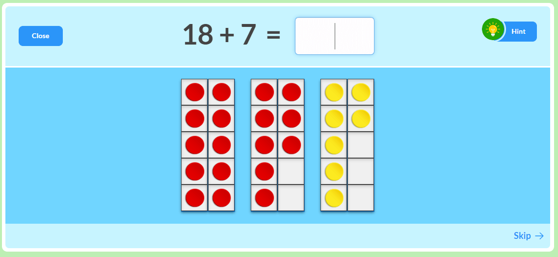 MathFactLab's advanced and super-advanced addition/subtraction stages help students to transfer their basic fact knowledge to 2-digit addition and subtraction problems.