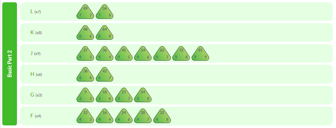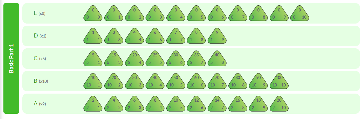 Students in our multiplication facts - division facts program progress through a series of eleven levels, beginning with the foundational stage: